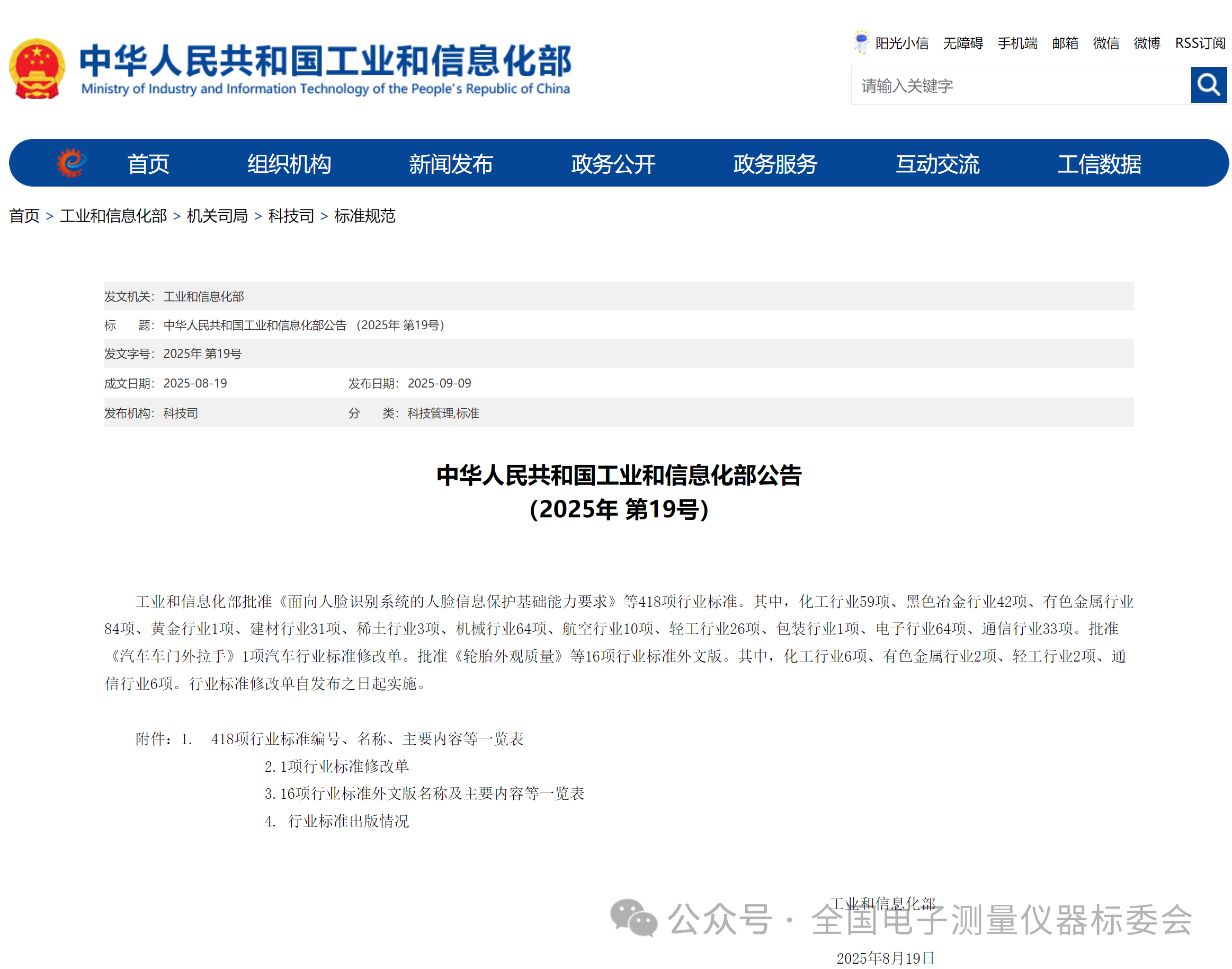 根據(jù)中華人民共和國(guó)工業(yè)和信息化部公告(2025年 第19號(hào)),由全國(guó)電子測(cè)量?jī)x器標(biāo)準(zhǔn)化技術(shù)委員會(huì)歸口的《鋰電池芯短路測(cè)試儀》(標(biāo)準(zhǔn)號(hào):SJ/T 10230-2025)《電子紅外額溫計(jì)通用規(guī)范》(標(biāo)準(zhǔn)號(hào):SJ/T 10231-2025)等2項(xiàng)電子行業(yè)標(biāo)準(zhǔn)正式發(fā)布。