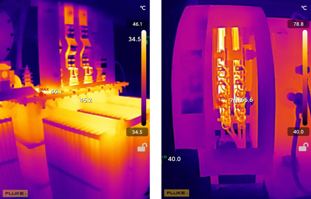 對(duì)站內(nèi)的高壓電氣設(shè)備、高壓電動(dòng)機(jī)及軸承的定期巡檢工作,巡檢人員無(wú)法接觸的高壓線(xiàn)路、使用Fluke iSee手機(jī)熱像儀,可以在安全距離外進(jìn)行非接觸測(cè)量,直觀(guān)、迅速地通過(guò)溫度判斷風(fēng)險(xiǎn)。同時(shí),拍完即可馬上通過(guò)手機(jī)發(fā)送給主管或者同事,進(jìn)行高效溝通。