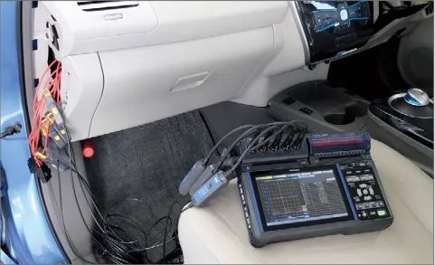 整車評估需要多點的測量數(shù)據(jù)。包括多個遠(yuǎn)距離測量點,例如車輛前部的保險絲盒、后背箱內(nèi)的溫度、發(fā)動機的廢熱、車身和車軸的剛性等。但是,若要同時獲取這些數(shù)據(jù),布線可能會變得復(fù)雜。