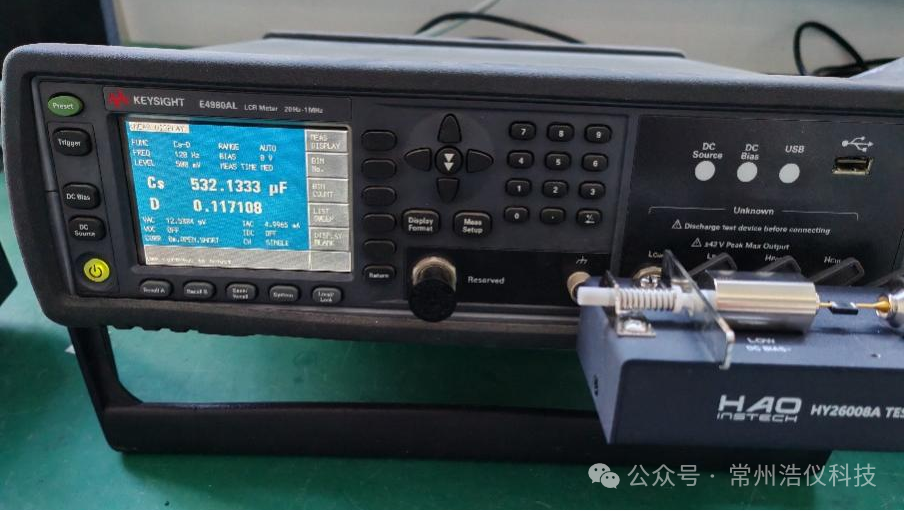 因固態(tài)鋁電解電容器的特性,對測試系統(tǒng)的精度要求很高,包括測試儀器本身都會影響誤差,這里為了驗(yàn)證測試準(zhǔn)確性,我們采用KeysightE4980AL LCR Meter作為輔助參考,對比驗(yàn)證我們儀器的測試準(zhǔn)確性。