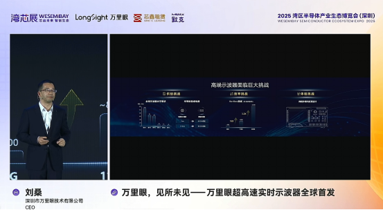 深圳市萬里眼技術有限公司CEO 劉桑在90GHz超高速示波器發(fā)布會上也是著重地介紹了本次90GHz超高速示波器集高帶寬、高采樣率和高性能于一體,以高保真快速捕獲和展示波形信號。