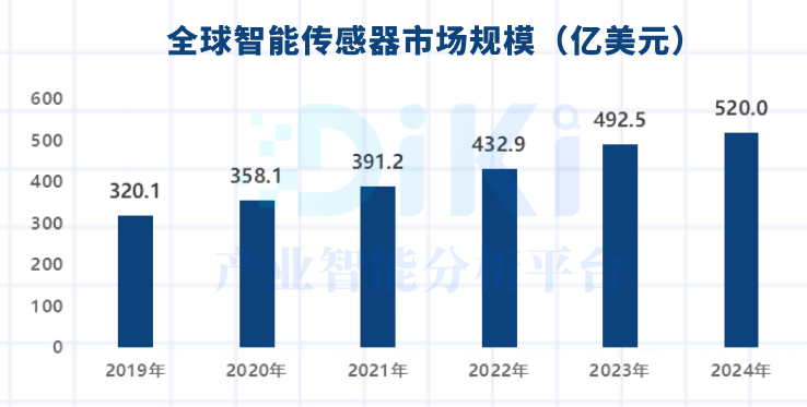 近期,深圳國(guó)家高技術(shù)產(chǎn)業(yè)創(chuàng)新中心發(fā)布《數(shù)說(shuō)“十五五”新興和未來(lái)產(chǎn)業(yè)布局》系列內(nèi)容,披露了部分新一代信息技術(shù)產(chǎn)業(yè)發(fā)展信息,其中,包括智能傳感器產(chǎn)業(yè)。本文僅簡(jiǎn)略披露部分相關(guān)智能傳感器產(chǎn)業(yè)信息,詳細(xì)數(shù)據(jù)請(qǐng)查看深圳國(guó)家高技術(shù)產(chǎn)業(yè)創(chuàng)新中心相關(guān)內(nèi)容。報(bào)告顯示,2024年全球智能傳感器市場(chǎng)規(guī)模達(dá)520億美元,同比增長(zhǎng)5.58%,2022-2024年復(fù)合增長(zhǎng)率為9.58%,預(yù)計(jì)未來(lái)將繼續(xù)穩(wěn)定增長(zhǎng)。