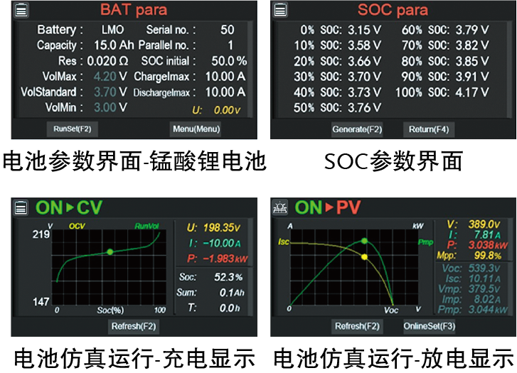該電源能夠模擬實際應用中的電池特性,包括充放電行為,以輔助完成各類測試。該系列內(nèi)置8種固定電池模型+1種可自定義電池模型(模型基于國內(nèi)外公開發(fā)表的相關研究論文和測試數(shù)據(jù)):錳酸鋰(LMO)、鈷酸鋰(LCO)、磷酸鐵鋰(LFP)、三元鋰(NCM)、鈦酸鋰(LTO)、鉛酸(Pb)、鎳氫(NiMH)以及鎳鎘(NiCd)電池。
