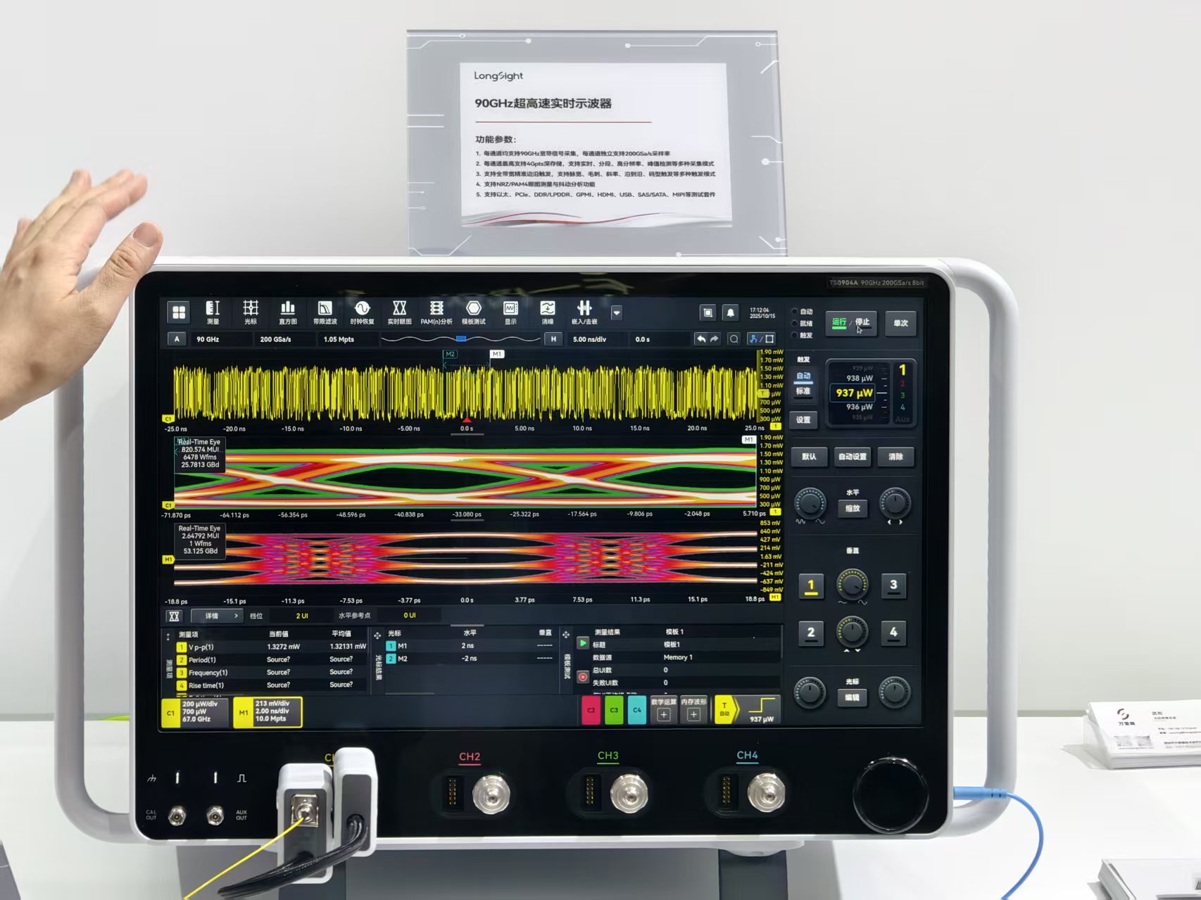 在美國對華實施60GHz以上示波器出口管制后,這一技術(shù)瓶頸對發(fā)展的制約更明顯。10月15日,在灣區(qū)半導(dǎo)體產(chǎn)業(yè)生態(tài)博覽會上,成立僅兩年的萬里眼公司推出了帶寬達90GHz的超高速實時示波器,旨在突破這一技術(shù)封鎖。