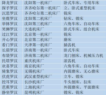 新中國的18家企業(yè)被確定為機床生產(chǎn)的重點骨干企業(yè),業(yè)內(nèi)稱為“十八羅漢”。