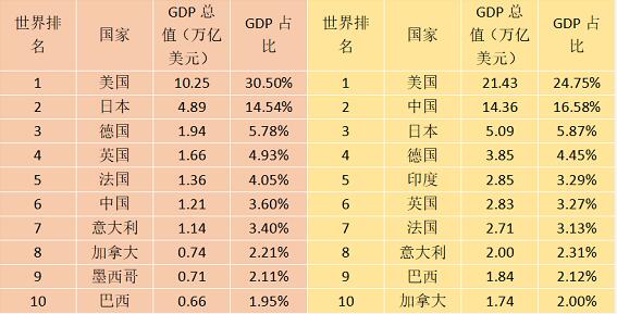 2000年(左)與2019年(右)世界經(jīng)濟對比
