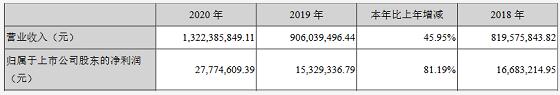 受政策影響,華中數(shù)控2020年歸屬于上市公司股東的凈利潤增長81.19%,企業(yè)營業(yè)收入增長45.95%。